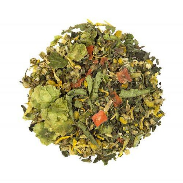 Zutaten: Melisse*, Kamille* (16%), Fenchel* (14%), Süßholzwurzel*, Anis*, Kümmel*, Karotte*, Pfefferminze*, Hopfenblüten*. *Aus kontrolliert biologischem Anbau.